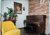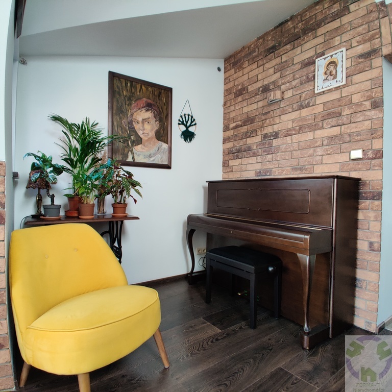 - SALONU /pow. po podłodze ok. 25,3m2/ łączącego funkcję wypoczynkową z miejscem na stół jadalniany, gdzie obecnie urządzono pokój muzyczny z pianinem z salonu wyjście na osłonięty TARAS z widokiem na ul. Św. Ducha!