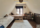 - DWÓCH SYPIALNI / pow. ok. 25,0m2 i 9,3 m2/, obydwie sypialnie doskonale doświetlone, okna wychodzące na północny wschód, południowy wschód i południowy zachód. W większej sypialni znajduje się zabudowana szafa, pełniąca funkcję garderoby.
