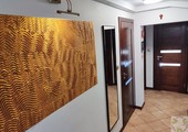 - HOL WEJŚCIOWY DWUPOZIOMOWY /o pow. 7,6 m2/- różnica poziomów to 2 schodki, 30 cm, dzielący APARTAMENT na dwie części funkcjonalne - prywatną (nocną) i oficjalną (dzienną).