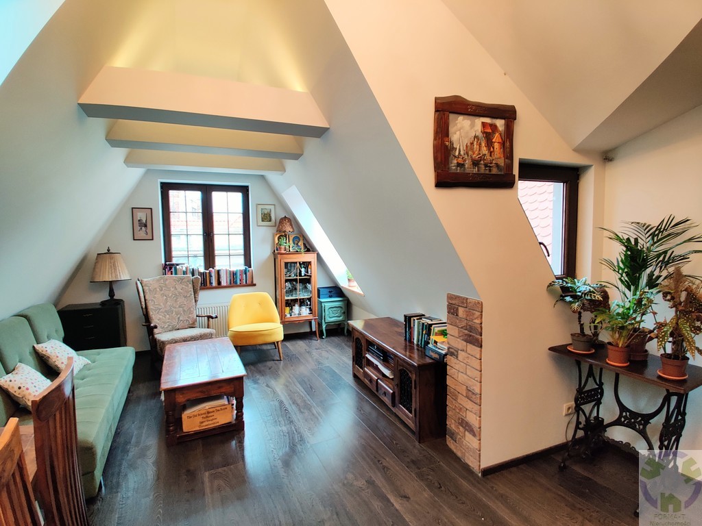 UWAGA! Powierzchnia rzeczywista, liczona po podłodze, wynosi ok. 85 m2, (ze względu na skosy pow. w KW 43,85 m2). Ponieważ skosy mają korzystne nachylenie, a w salonie i kuchni zaczynają się na wysokości ok. 90 cm, powierzchnia mieszkalna jest wykorzystana praktycznie w całości, co jest widoczne na zdjęciach.