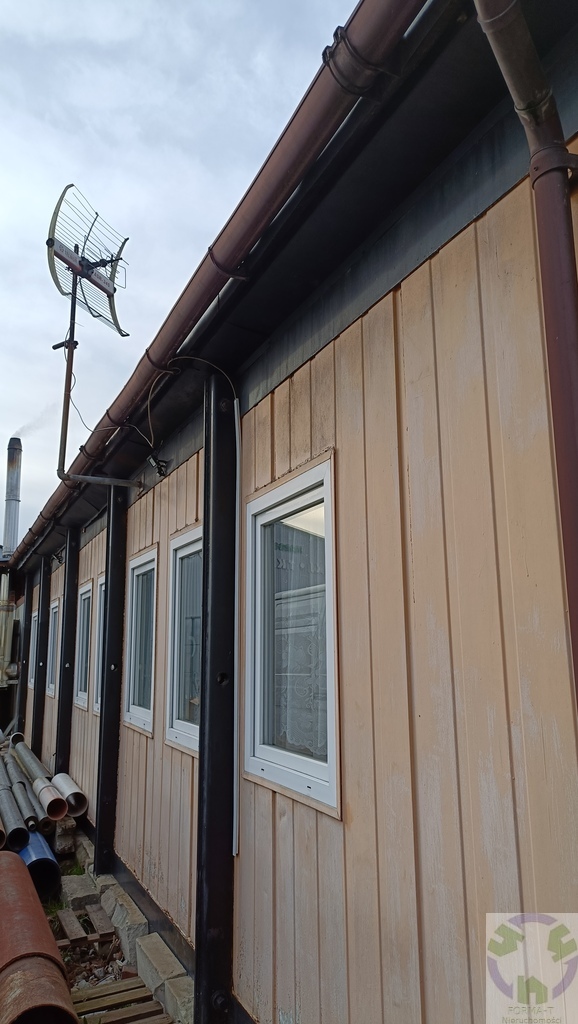Budynek znajdujący się na działce to kontenery mieszkalne całkowicie wyposażone i nadające się na kwatery pracownicze lub biura.